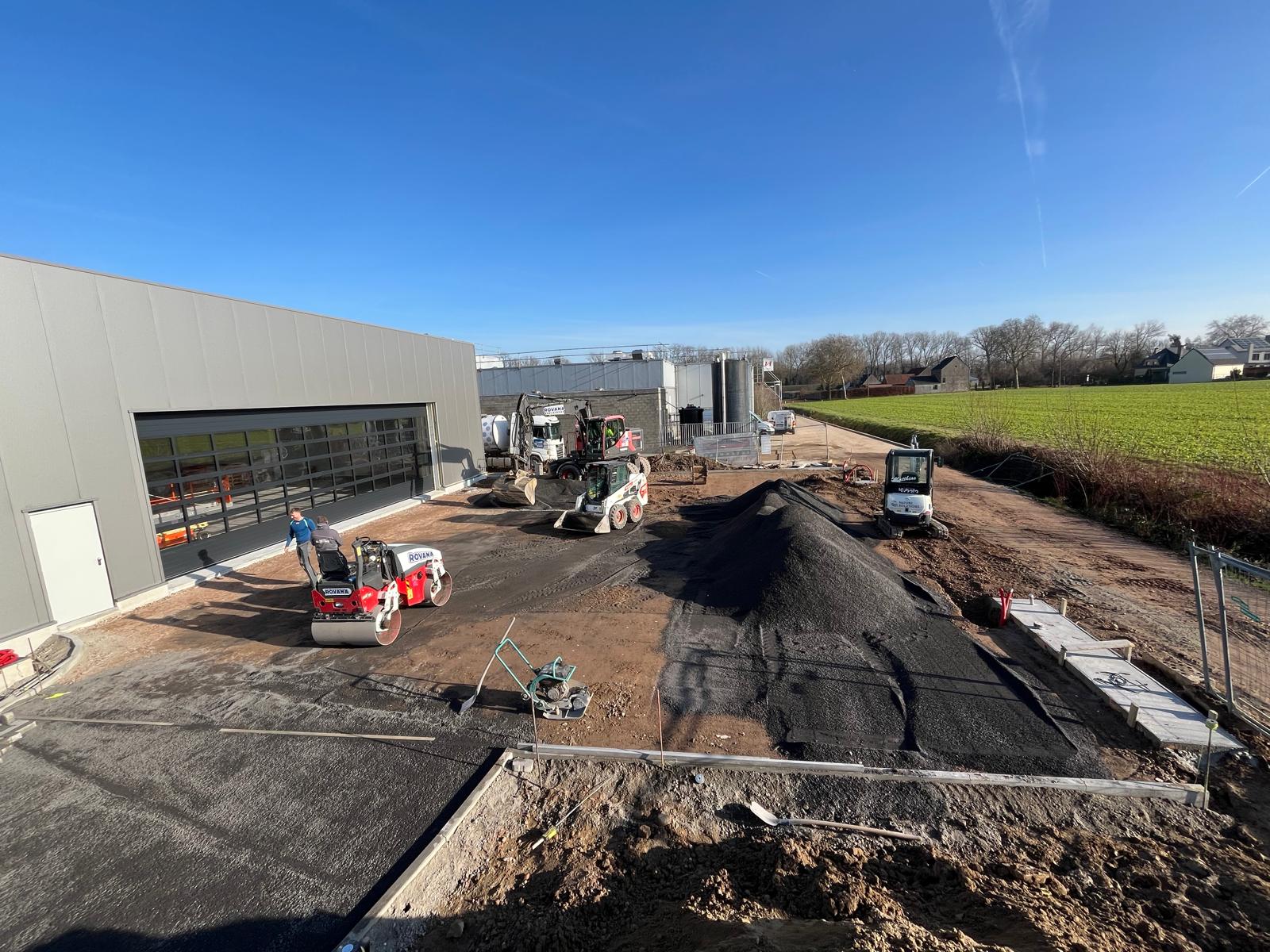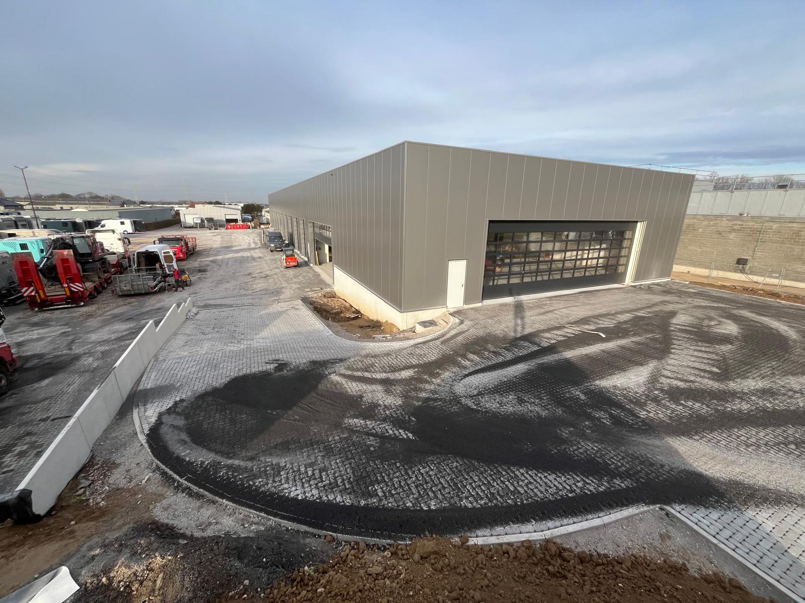 Recent gingen we opnieuw aan de slag op het terrein van Stephex in Merchtem. Na de eerdere grondwerken en de bouw van het industriegebouw, lag de focus deze keer op de afwerking.